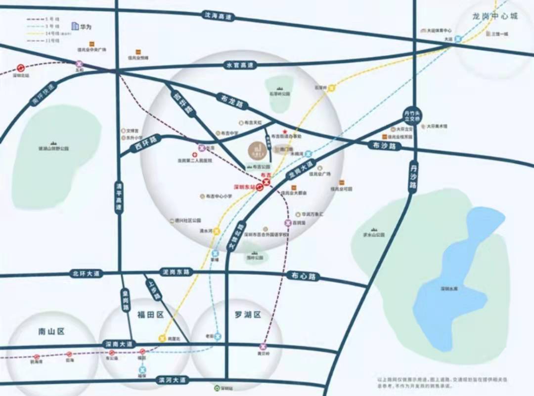 3地鐵:項目距離3、5、14(在建預計明年通車)號線匯聚的布吉站直線距離約500m,距離5號線長龍站直線距離約600m。實現無縫接駁羅湖、福田、南山、寶安核心區。